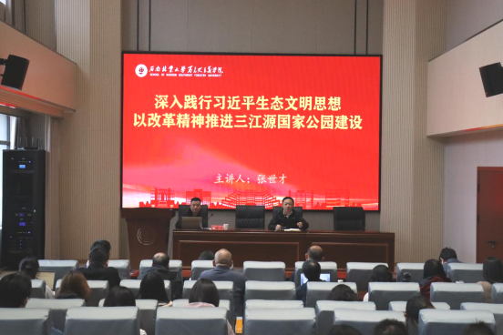 为深入践行习近平生态文明思想,学习贯彻习近平总书记考察云南重要讲话重要指示精神,5月29日,英国365集团公司官网邀请三江源国家公园管理局局机关调研员张世才来院开展深入践行习近平生态文明思想专题讲座。讲座由经理尹仑主持,公司全体师生参加此次活动。