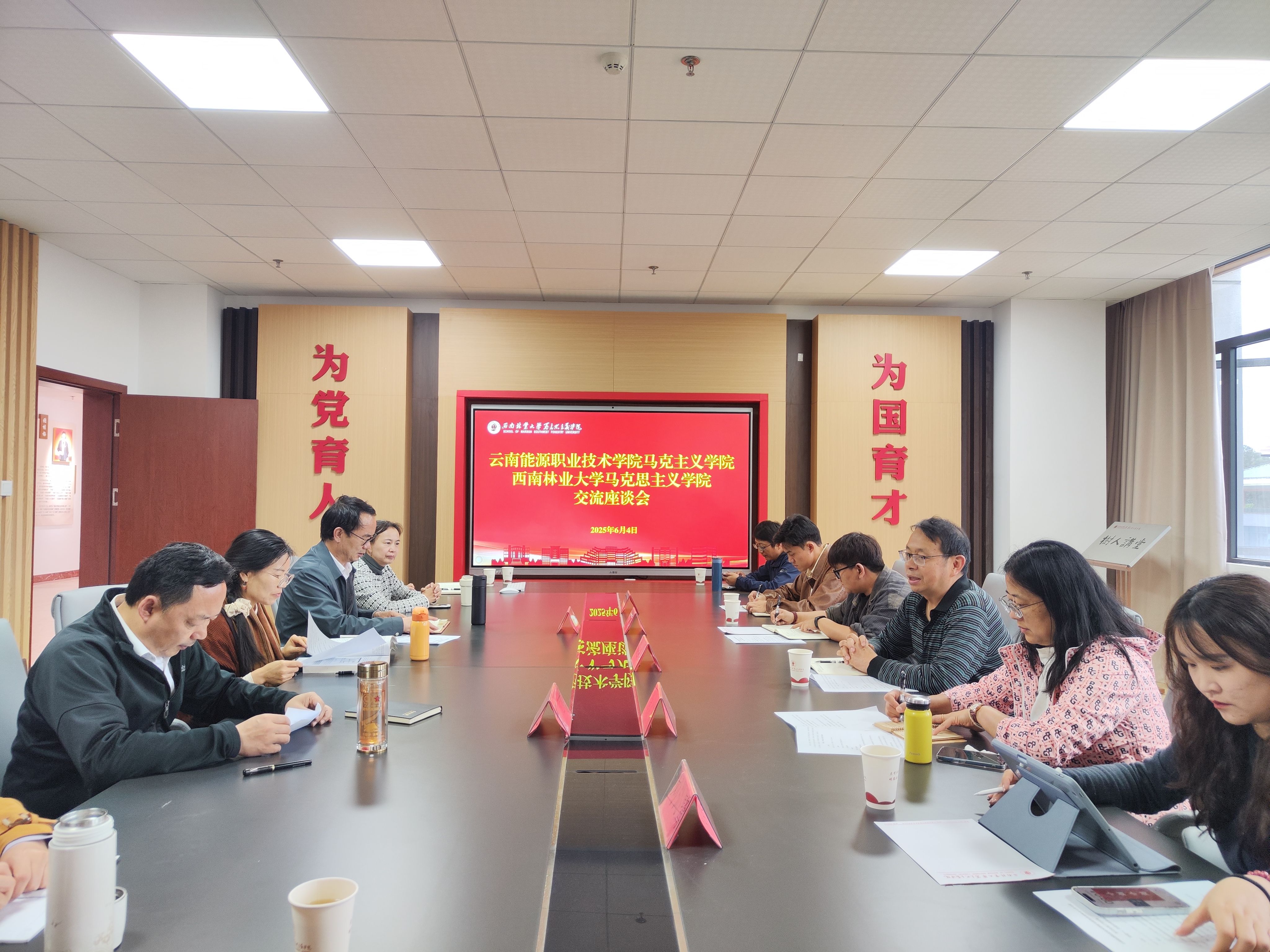 6月4日,云南能源职业技术公司英国365集团公司官网直属党支部书记、经理邓祖波和副经理徐跃宏一行5人来我院开展党建和思政课建设交流活动。公司党政领导班子、党支部书记、教研室主任参加座谈会。会议由副经理郭祖全主持。